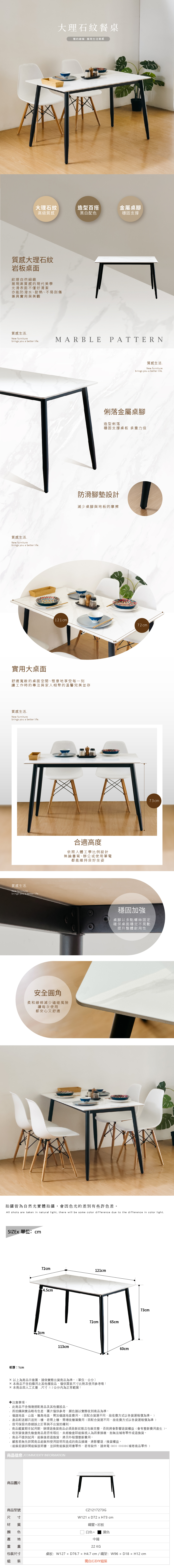 商品尺寸: W121 x D72 x H73 cm