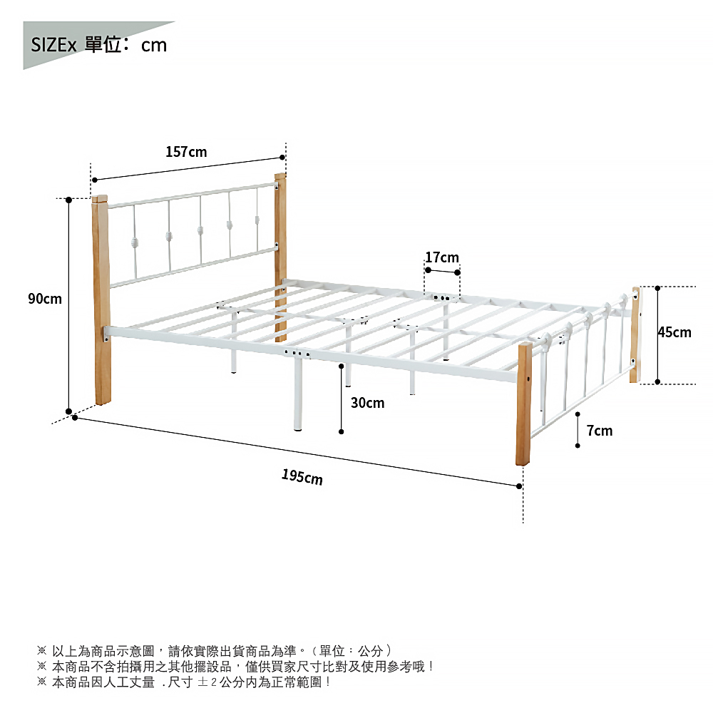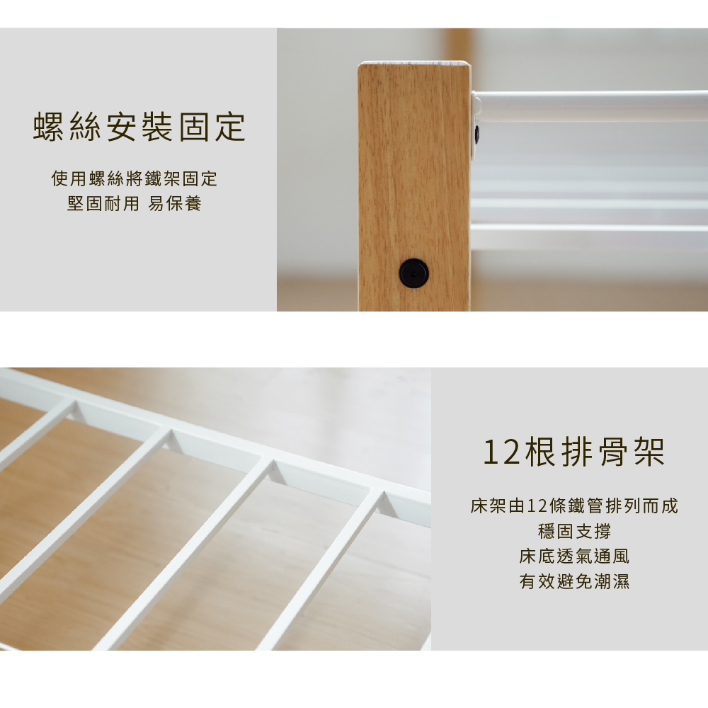 ✓ 耐重鐵製床架,結構穩固,可耐重約250公斤