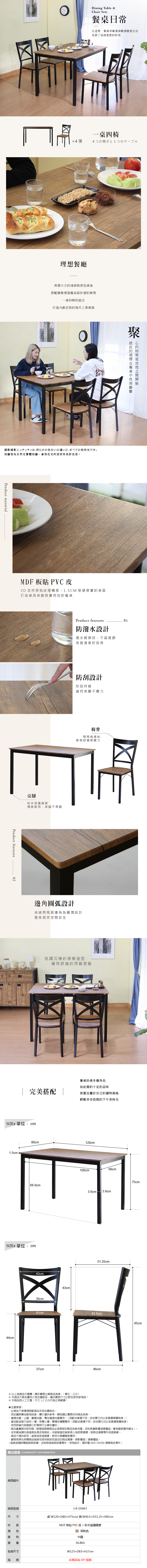 商品尺寸:桌子:W120 × D80 × H75 cm/椅子:W40.5 × D51.25 × H85 cm
