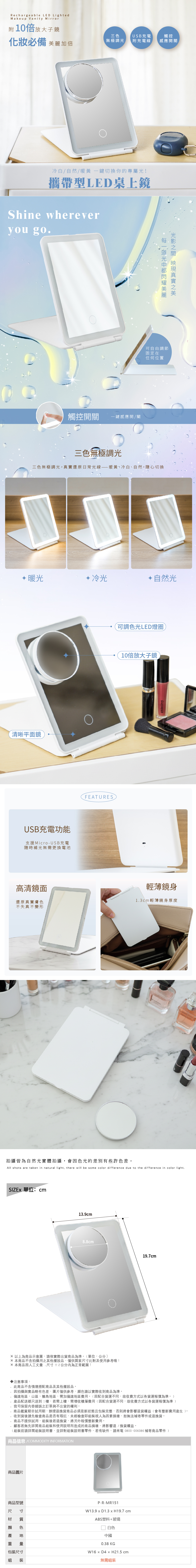商品材質: 塑料 + 玻璃 + LED燈